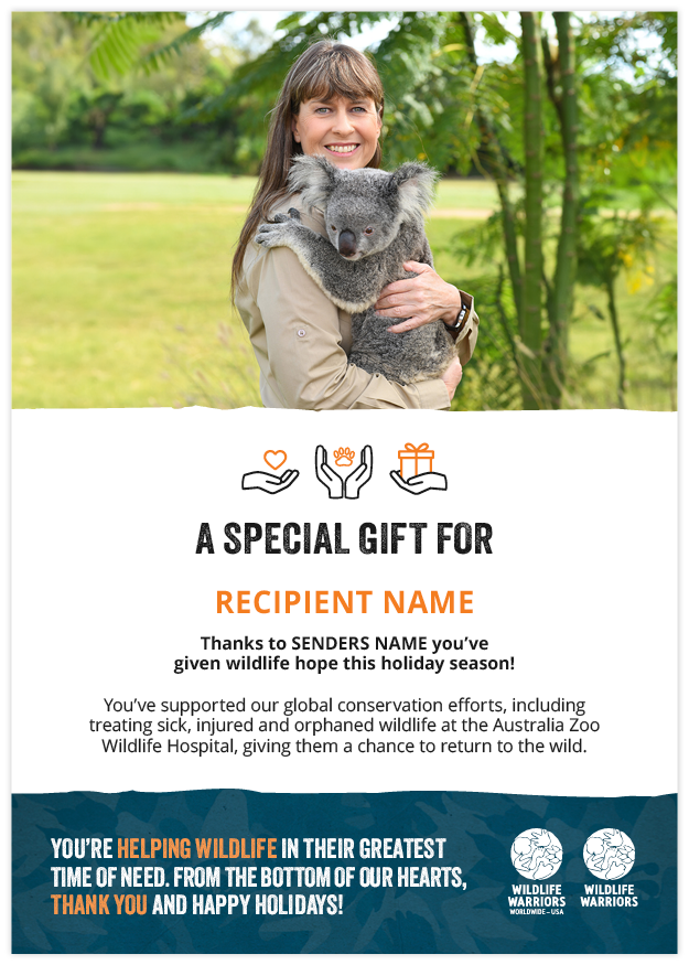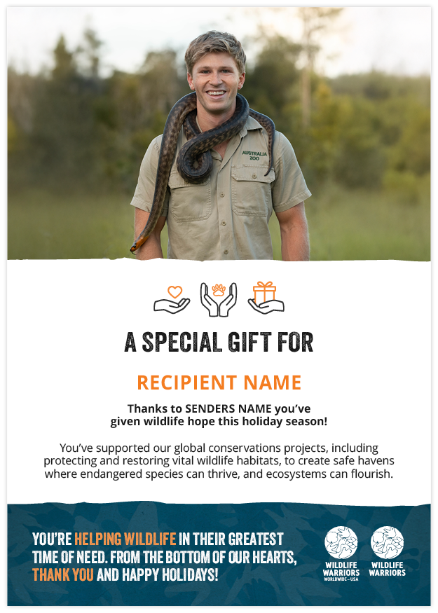 Every purchase of a virtual certificate supports the lifesaving conservation work Steve Irwin was so passionate about. So, in the spirit of giving, choose a gift that truly keeps on giving, and make a real difference this Christmas.