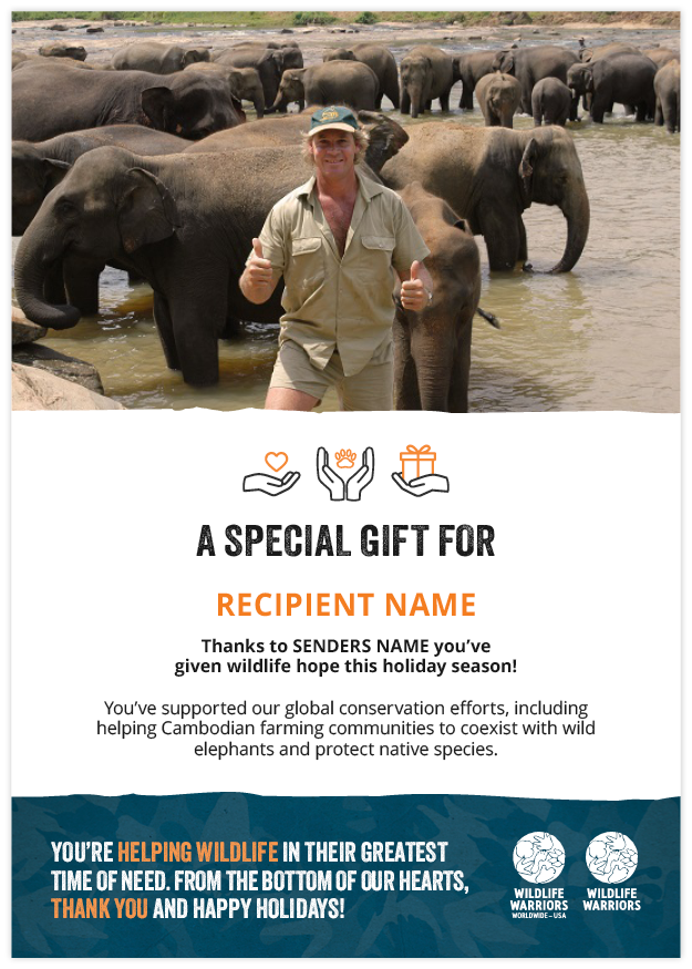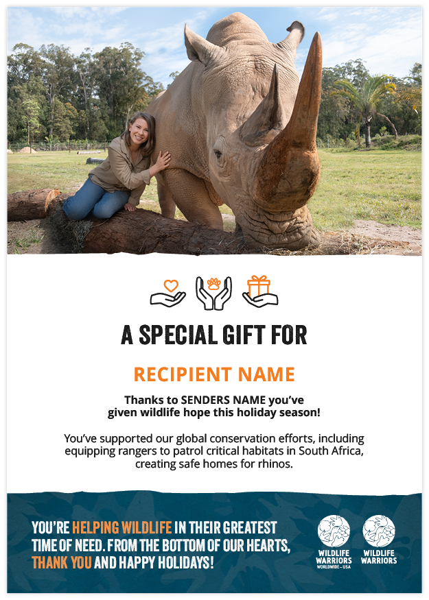 A gift to conservation will brighten your loved one’s day and help protect injured and endangered wildlife all over the world.